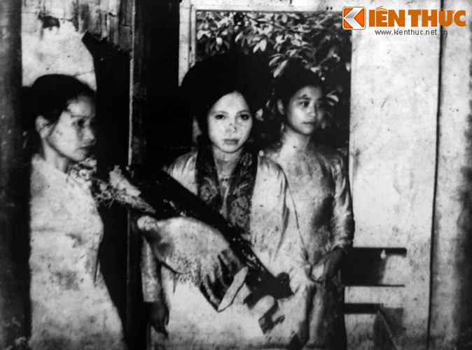 Phù dâu chuẩn bị trang phục cho cô dâu trong đám cưới của cố họa sĩ Vinh Phối và bà Thạch Huệ, 9/3/1969, nay ở phường Phú Cát, TP Huế.
