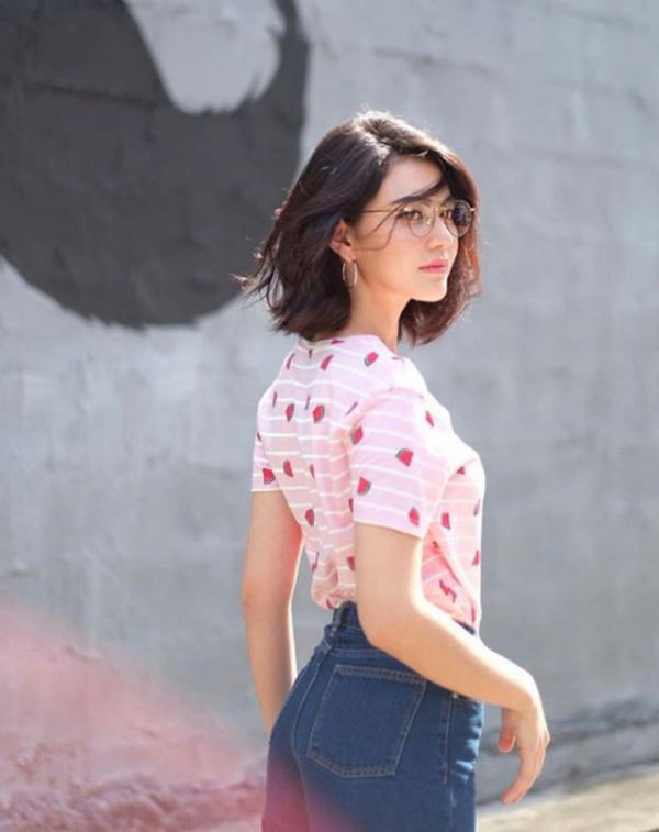 Nếu bạn e ngại và không đủ “can đảm” để diện áo hai dây hay croptop như Mai Davika thì bạn có thể học ngay cách phối đồ đơn giản nhất này. Áo thun và quần jeans là công thức không bao giờ lỗi mốt và không kén bất cứ vóc dáng nào. Chỉ lưu ý ở các cô nàng có vòng 1 nhỏ nhắn là nên chọn áo thun có màu sắc tươi sáng, họa tiết sọc ngang và quần jeans lưng cao, ống rộng để che khuyết điểm và hợp thời trang nhé.