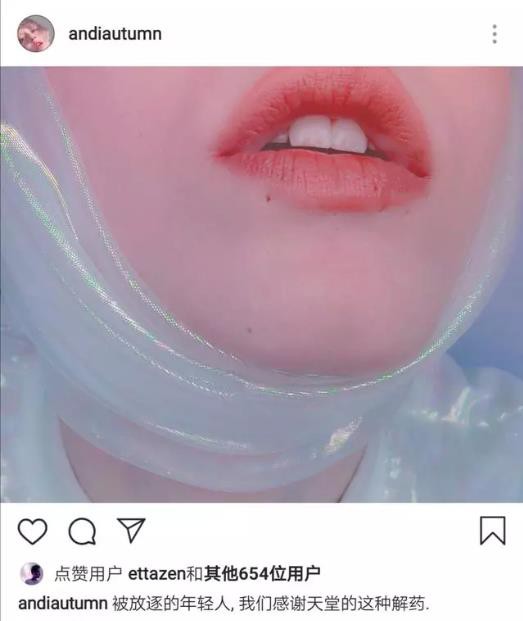 Không còn cách nào khác, hôm nay Andi chia sẻ hình ảnh của mình trên mạng xã hội, cô dùng vải lụa trắng siết chặt cổ mình, tạo cảm giác ngột ngạt không hít thở nổi, cùng với dòng nội dung khiến người khác liên tưởng đến cái chết: "Liều thuốc tại thiên đường".