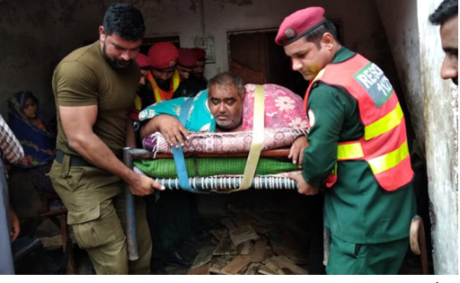 Theo truyền thông Pakistan, các nhân viên cứu hộ đã buộc phải phá cửa trước nhà Hassan mới đưa được ông ta đến chiếc trực thăng đậu gần đó.