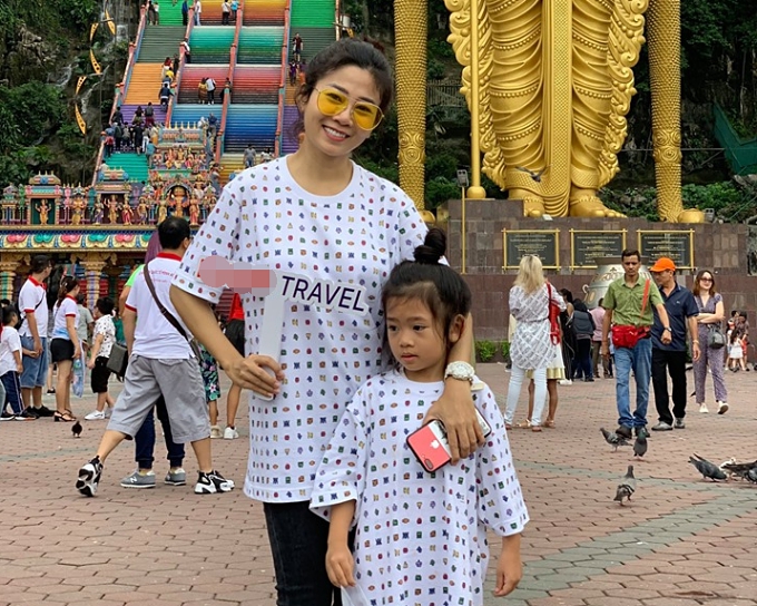 Nhân dịp nghỉ hè, diễn viên Mai Phương đưa con gái Lavie đi du lịch Malaysia - Singapore từ ngày 19-23/6. Hai mẹ con diện đồ giống nhau và cùng khám phá nhiều thắng cảnh, trong đó có động Batu của Malaysia. Vì sức khoẻ không thể leo bậc thang cao, hai mẹ con cùng chụp hình kỷ niệm trước tượng thần Murugan linh thiêng.