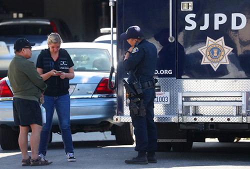 Hiện trường vụ nổ súng ở thành phố San Jose, bang California, hôm 24/6. Ảnh: SF Gate