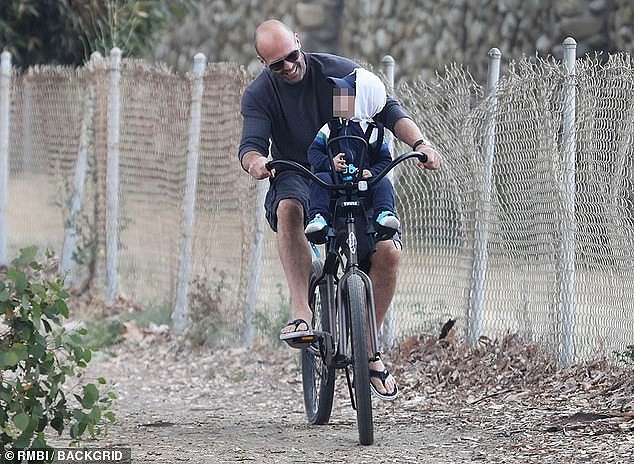 Jason Statham vui vẻ trò chuyện với con trai khi đạp xe trên đường