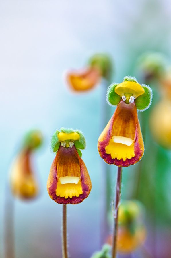 Những bông hoa màu cam sáng này làm chúng ta nghĩ về khuôn mặt người ngoài hành tinh hạnh phúc có đôi tai màu xanh lá cây đang cầm một cái khay trắng trống không trong tay. Loài cây lâu năm kỳ quái này có nguồn gốc Nam Mỹ. Hoa Happy alien còn có tên gọi khác là ‘Darwin’s slipping flower’.