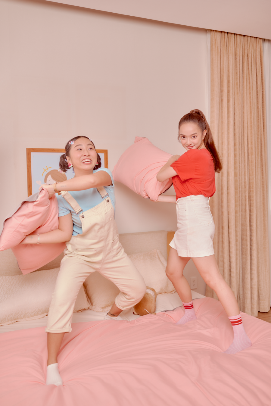 Còn trong hậu trường, bộ đôi đã trở về đúng chất chị em “lầy lội” khi vừa rượt đuổi nhau, vừa trêu nhau bằng những biểu cảm hài hước.