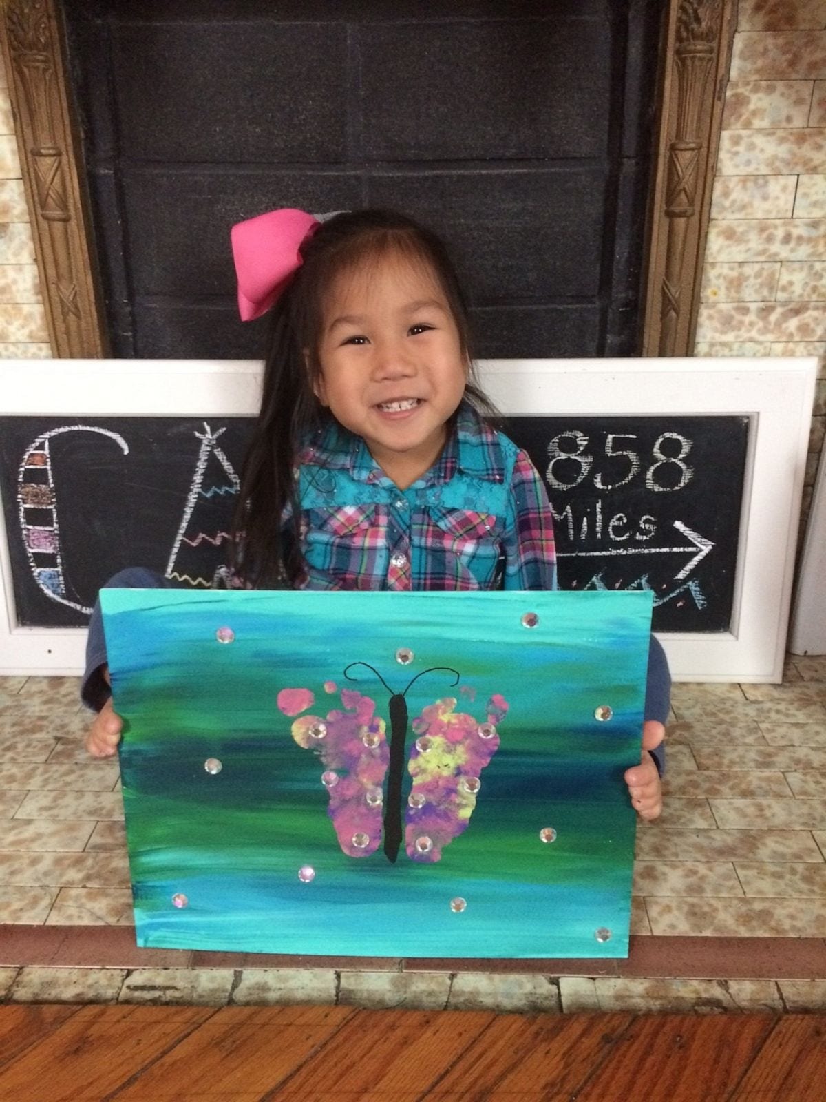 Miinh Best và bức tranh em vẽ bằng chân. (Hình: Good Morning America)