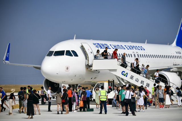 Những vị khách đầu tiên đặt chân xuống sân bay Vu Sơn vừa khai trương