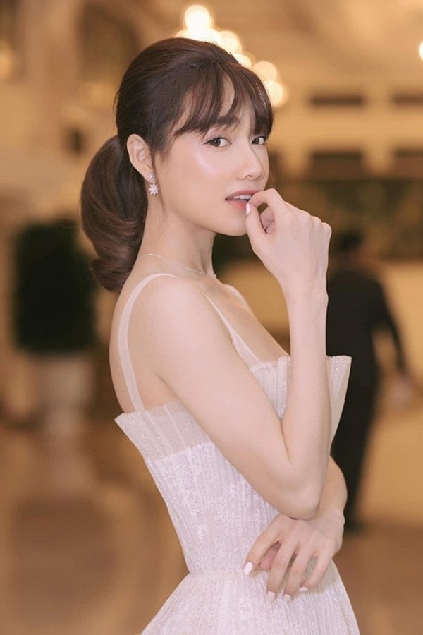 Sau khi sinh con đầu lòng, Nhã Phương được khen ngày càng nhuận sắc và thường xuyên xuất hiện tại các sự kiện với phong cách gợi cảm. Trong những sự kiện trước đó, bà xã Trường Giang chọn trang phục xẻ cao, khoét sâu cổ khoe được lợi thế vòng một nảy nở.