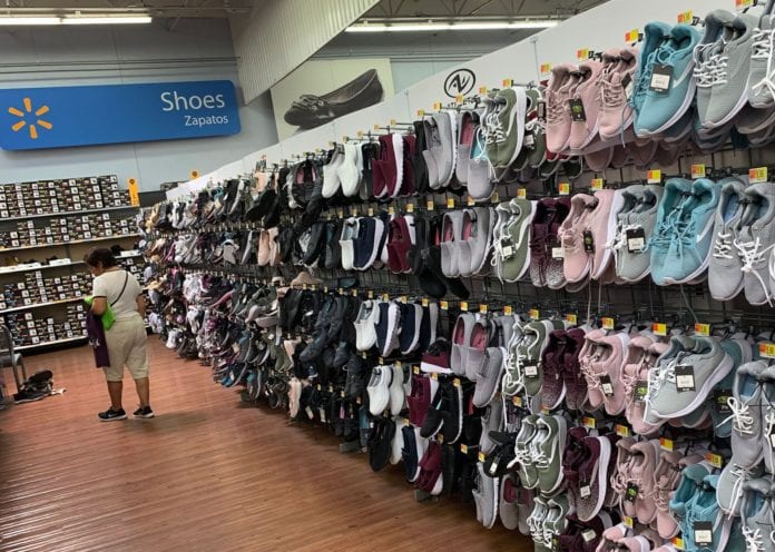 Số lượng giầy dép trị giá khoảng $100 tỉ nhập cảng từ Trung Quốc vừa bị tăng thuế cuối tuần qua. (Hình: Mark Ralston/AFP/Getty Images)