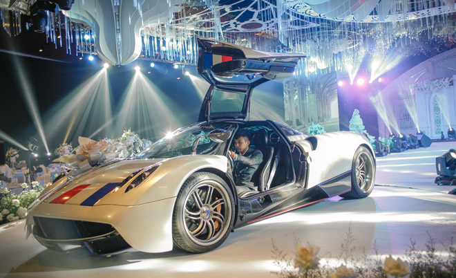 Trước đó, đại gia Minh Nhựa đã cất công “thay áo mới” cho siêu phẩm Pagani Huayra từ màu cam nguyên bản sang sang màu trắng, nhằm phục vụ cho hôn lễ con gái đầu lòng của vị đại gia ngành nhựa.