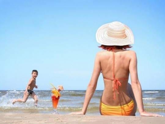 Bên cạnh nàng là một cậu bé chừng 3 tuổi rất kháu khỉnh đang mải nghịch cát có lẽ là con của nàng.
