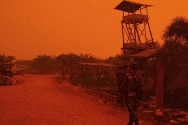 Vào những ngày cuối tuần vừa qua, bầu trời bao trùm khắp tỉnh Jambi, Indonesia chuyển sang màu đỏ rực do ảnh hưởng từ các vụ cháy rừng khiến bầu trời một khu vực chuyển sang màu đỏ rực như máu, dù đang giữa ban ngày. Nhiều người còn liên tưởng cảnh tượng như trên sao Hỏa.