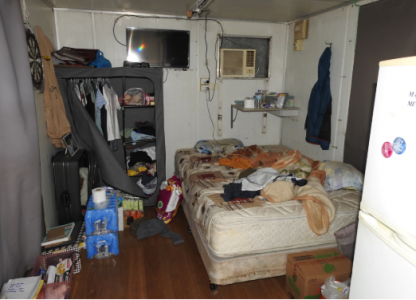 Khi khám xét, các giới chức tìm thấy một số công nhân nông trại đang sống trong điều kiện chật chội tù túng, trong một ngôi nhà tồi tàn và vài phòng dựng lên tạm bợ trong khuôn viên nông trại.