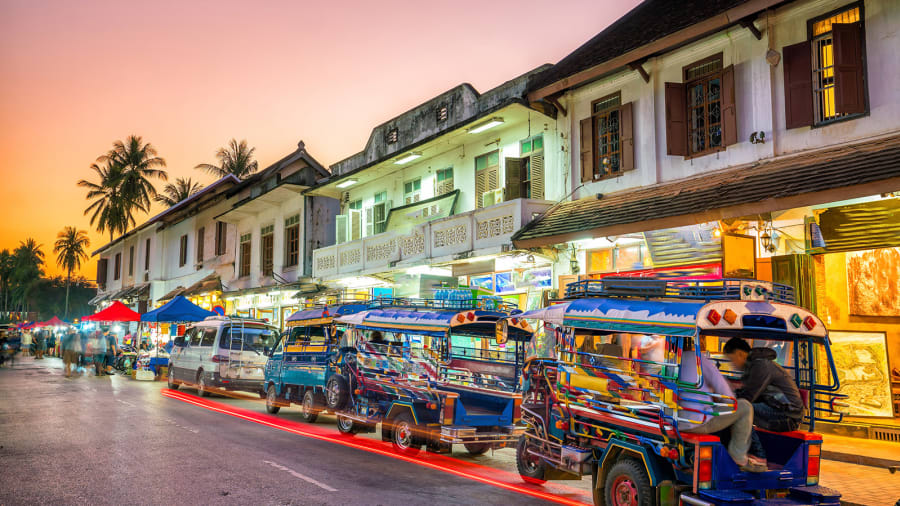 Lọt thỏm giữa một thung lũng ở miền trung Lào, thị trấn được ôm bởi những ngọn núi. Được công nhận là Di sản Thế giới của UNESCO vào năm 1995, sự kết hợp hài hòa giữa kiến trúc châu Âu và truyền thống Lào tạo nên một cảnh quan rất khác biệt.