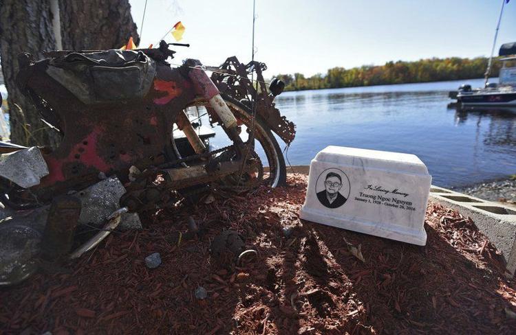 Nhóm làm sạch sông Clean River Project tìm thấy lọ tro cốt của ông Nguyễn Ngọc Trương và một xe gắn máy dưới sông Merrimack ngày thứ Sáu, 18 tháng 10, 2019. (Ryan Hutton/ The Eagle Tribune)