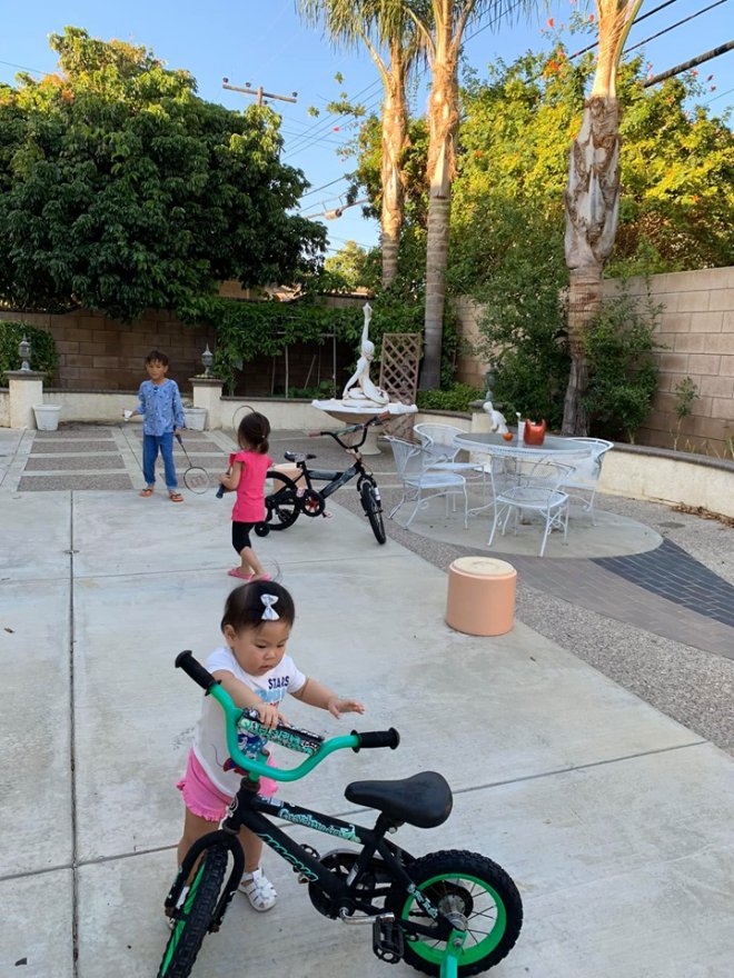 Các con của Thanh Thảo chơi đùa trong khuôn viên biệt thự.
