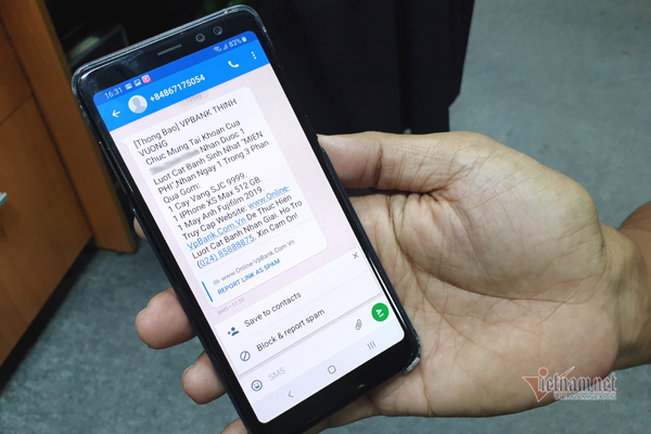 Chia sẻ với Pv. **********, anh Minh (Hoàn Kiếm, Hà Nội) cho biết vừa nhận được một tin nhắn giới thiệu chương trình khuyến mại từ ngân hàng Việt Nam Thịnh Vượng (VPBank). Điều đáng nói là tin nhắn này không đến từ đầu số tổng đài mà là từ một số máy lạ.