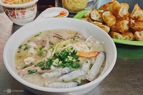 Đó là bánh mì xíu mại trứng muối, cháo sá sùng. Hai món ăn này rất lạ miệng ở Sài Gòn. Không tin bạn hãy thử xem, bạn sẽ mê tít ngay khi cho vào đầu lưỡi.