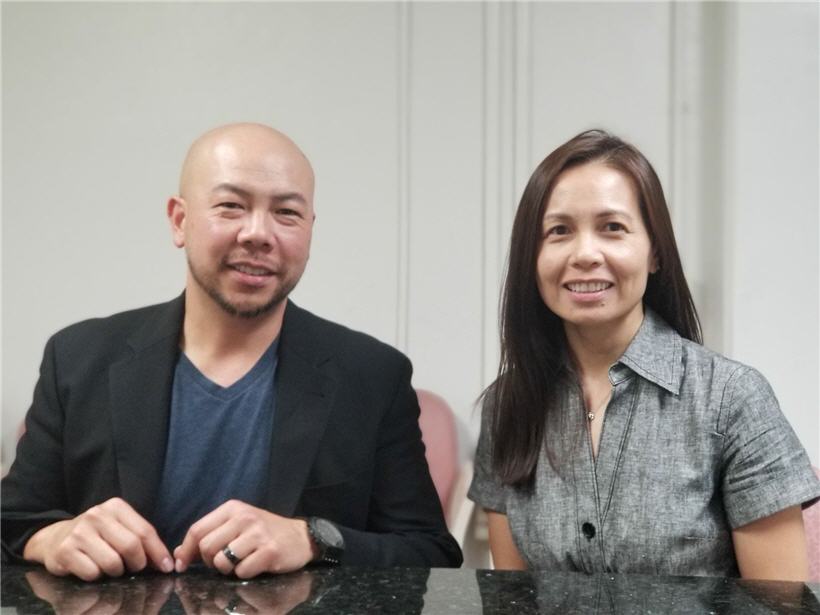 Anh Lộc Hoàng Bạch (Na) và cô Christie Hoàng Bạch (Trâm), hai thành viên trong Hội Đồng Quản Trị của chùa Bảo Quang. (Hình: Ngọc Lan/Người Việt)