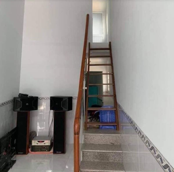 Đặc biệt, hình ảnh chụp lại khung cảnh bên trong ngôi nhà khiến nhiều người thích thú bởi nó dù hẹp nhưng cũng không bị bí bách như tưởng tượng mà diện tích chạy dài, cầu thang gỗ được thiết kế lên tầng trên. Trong khi đó chủ nhân ngôi nhà vẫn còn không gian để bày thêm một bộ dàn loa và không gian chạy dài phía sau cầu thang để chứa đồ.