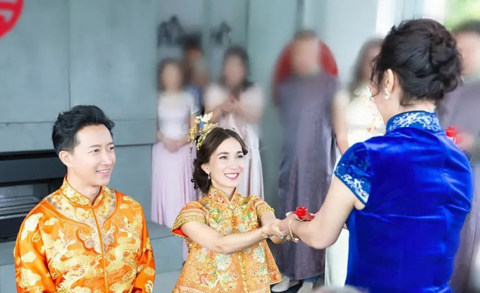 Cặp sao tổ chức lễ rước dâu theo phong tục truyền thống của người Trung Quốc.