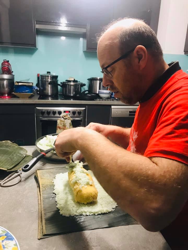 Ông chồng Pháp 7 năm ngồi gói bánh chưng để vợ đón Tết Việt nơi xứ người. Anh Hesry Philippe (49 tuổi, người Pháp) đã có thôi quen cùng vợ con vào bếp gói bánh chưng, bánh Tét từ năm 2013. Anh nói anh rất hạnh phúc khi cùng vợ dọn dẹp, trang trí nhà cửa để đón những người bạn tới nhà, cùng ăn mừng năm mới Âm lịch.