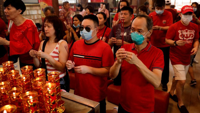Nhiều người dân Philippines mang khẩu trang khi đi lễ chùa tại khu Chinatown ở Binondo, Manila ngày 25-1. Ảnh: REUTERS
