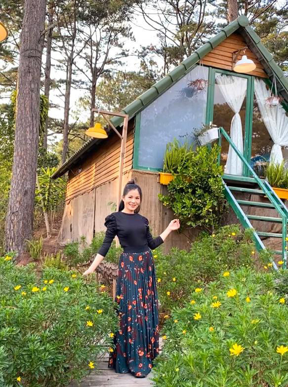 Vợ chồng Dạ Thảo đã thuê một căn nhà gỗ đầy mộng mơ nằm giữa rừng thông Đà Lạt, với muôn hoa khoe sắc xung quanh y như căn biệt thự xa hoa của họ ở Sài Gòn. Có vẻ như thời tiết Đà Lạt mấy ngày Tết khá đẹp, nắng vàng ấm áp, giúp chuyến đi của gia đình Quyền Linh trở nên tuyệt vời hơn.