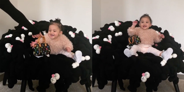 Stormi mới biết đi đã cầm trên tay chiếc túi Hermes đắt đỏ.