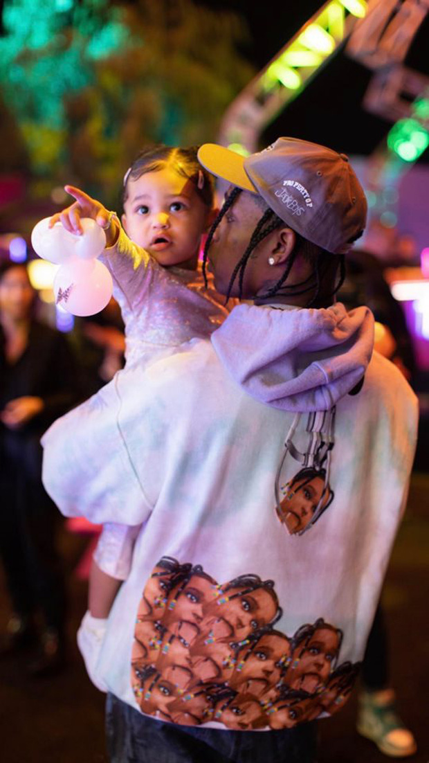 Travis Scott cũng mặc chiếc áo trong khuôn khổ "Stormi World" và chung vui cùng con gái.