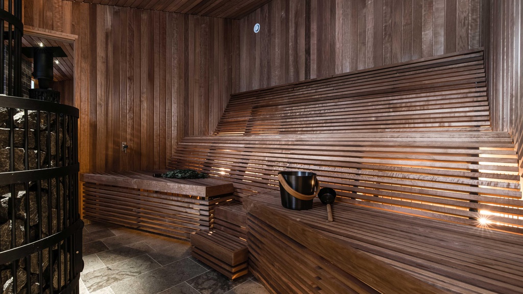 Bên cạnh bồn tắm lạnh ngoài trời, du khách có thể tận hưởng phòng tắm nóng, phòng xông hơi, phòng trị liệu tại đây.