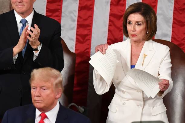 Ông Trump không bắt tay bà Pelosi. Bà Pelosi xé diễn văn của ông Trump vì cho rằng ông ta nói láo. Đó là những hình ảnh và thông điệp người Mỹ nhớ nhất về ngày thứ Ba 4/2/2020, chứ không phải nội dung của thông điệp liên bang, điều mà ai cũng biết trước là nó nói gì.