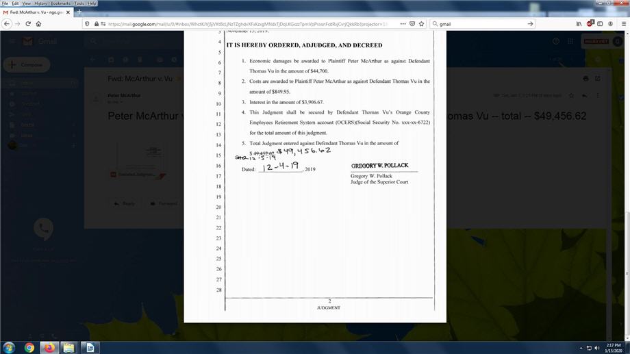Ngoài ra, ông Peter c̣n muốn báo cho “Judicial Council of California” là nơi cấp bằng thông dịch hữu thệ cho ông Thomas. “Tôi muốn hắn không c̣n mảnh bằng để đi lừa gạt nữa,” ông Peter nói.
