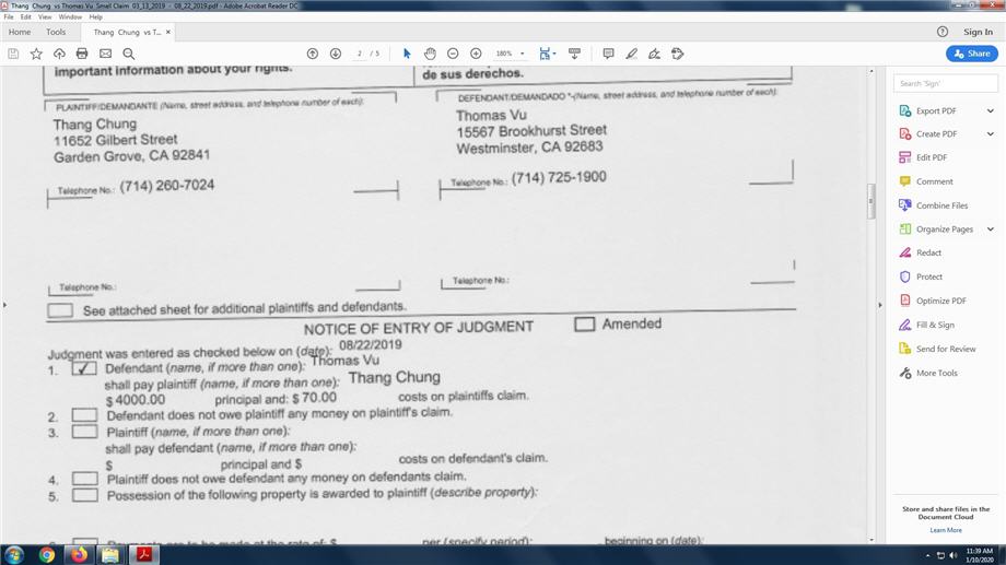 Ông Thắng Chung được ṭa xử thắng ông Thomas $4,000. (H́nh: Thắng Chung cung cấp)