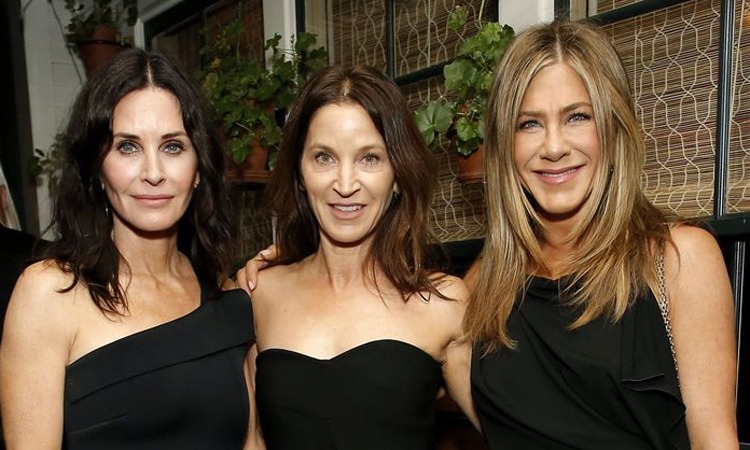 Jennifer Aniston cùng đồng nghiệp - Amanda Anka (giữa), Courteney Cox (phải) - ở tiệc sau Oscar. Ảnh: AFP.