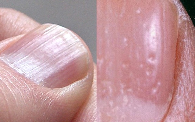 Dấu hiệu này ở móng tay báo hiệu sự lão hóa đang diễn ra trong cơ thể, hay là hậu quả của việc tiếp xúc quá nhiều với các chất tẩy rửa hoặc sơn móng tay, đặc biệt ở phụ nữ.