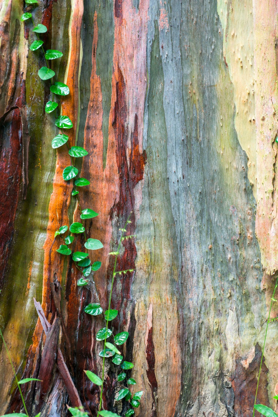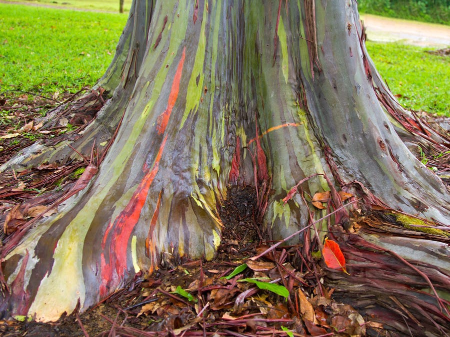 Cây bạch đàn cầu vồng khiến nhiều người vô cùng ngạc nhiên. Sau lớp vỏ xù xì là một dải màu vô cùng bắt mắt. Cây bạch đàn này có thể tìm thấy ở đảo Hawaii và một số nơi ở Mỹ.
