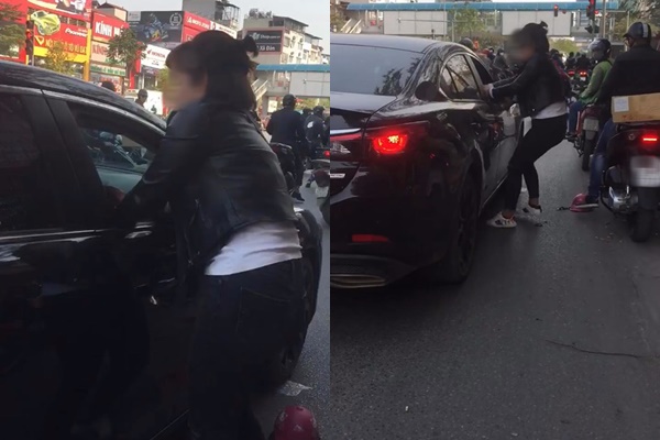 Thấy vậy, người phụ nữ lại tiếp tục quát lớn, yêu cầu chồng xuống xe nói chuyện. Cùng với đó, người phụ nữ này ra sức kéo áo cô gái lạ trên xe cùng chồng kèm lời quát: "Xuống ngay, xuống ngay xe nói chuyện". Dù vậy, cả chồng và cô nhân tình vẫn cương quyết không xuống xe.