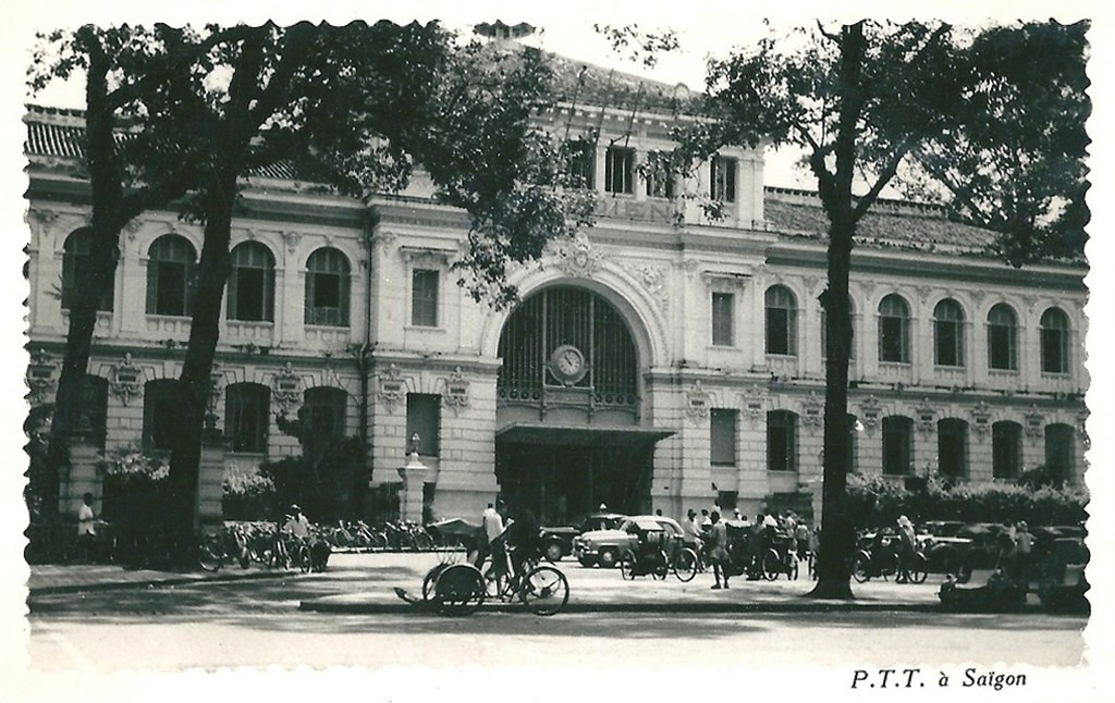 Bưu điện Trung tâm Sài Gòn thập niên 1950. Nét đặc trưng trong kiến trúc Bưu điện là phong cách châu Âu kết hợp với một số nét trang trí châu Á.