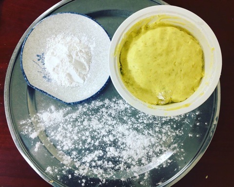 Bước 2: Trộn khoai đã nghiền cùng nước cốt dừa và sữa đặc (tùy nhu cầu về độ ngọt, nhạt). Sau đó cho thêm bột năng để được hỗn hợp bột vừa đủ độ ko lỏng không khô quá, nặn thành từng viên bằng ngón thay hoặc ý muốn.