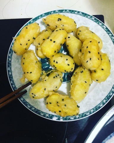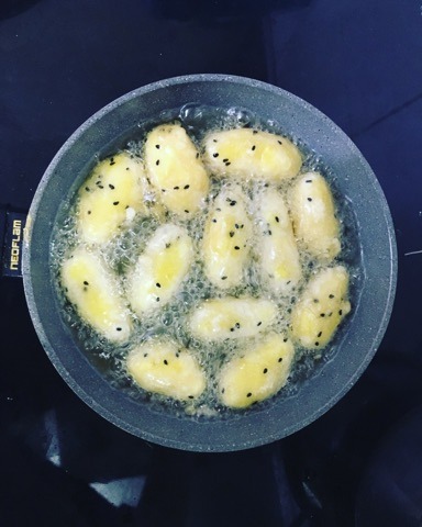 Bước 4: Lăn khoai đã nặn ở trên qua bột chiên rồi rán ngập dầu.