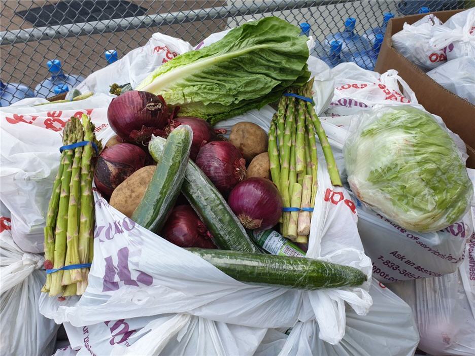 “Chúng tôi có sữa tươi, rau cải, dưa leo (squash), măng Tây, hành Tây, khoai Tây, dầu ăn, thịt heo muối, các loại pasta, các loại đậu rang (trail mix), các loại đậu hộp như chuối, nho, bơ (avocado), lê…,” một thiện nguyện viên cho biết. “Có tới hơn 12 loại đồ hộp khác nhau.”