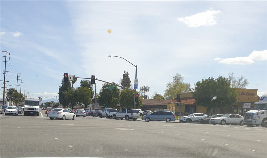 Xe đông nghẹt từ trước khi đến góc First/Harbor. (Hình: Đằng-Giao/Người Việt)