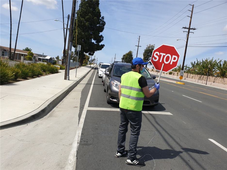 Đó là cảnh người người đến lãnh thức ăn, đông đến nỗi gây kẹt xe, do hội bất vụ lợi Official No One Left Behind (ONOLB) phối hợp cùng OC Action Food Bank tổ chức phát thức ăn miễn phí tại sân trường Magnolia Science Academy, 2840 W. First St., Santa Ana, CA 92703.