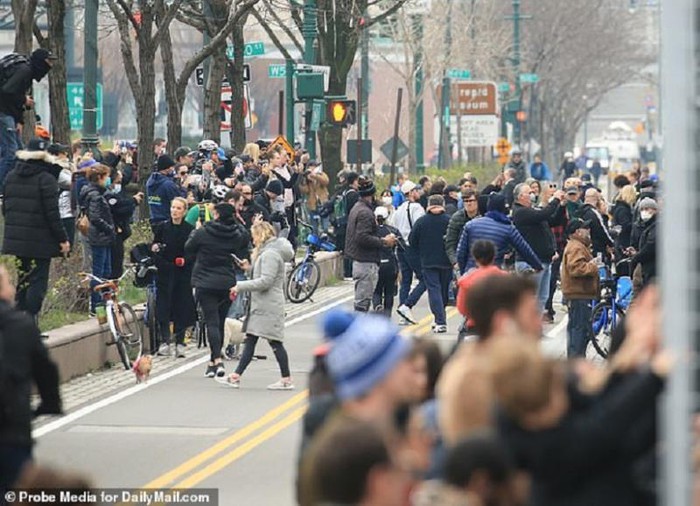"Không có giãn cách xã hội khi đám đông tới xem USNS Comfort", phóng viên Andrew Siff của NBC News viết trên Twitter.