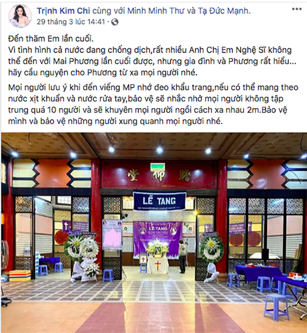Những bài chia sẻ của nghệ sĩ Trịnh Kim Chi từ khi Mai Phương không còn nữa