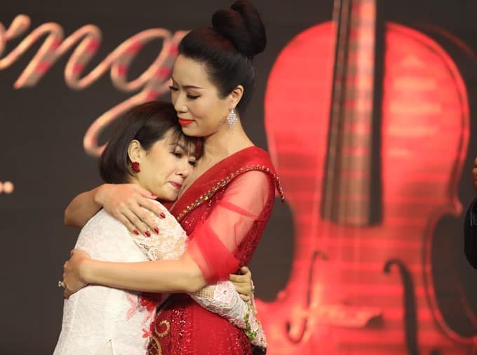 Hình ảnh giữa nghệ sĩ Trịnh Kim Chi và Mai Phương trên sân khấu