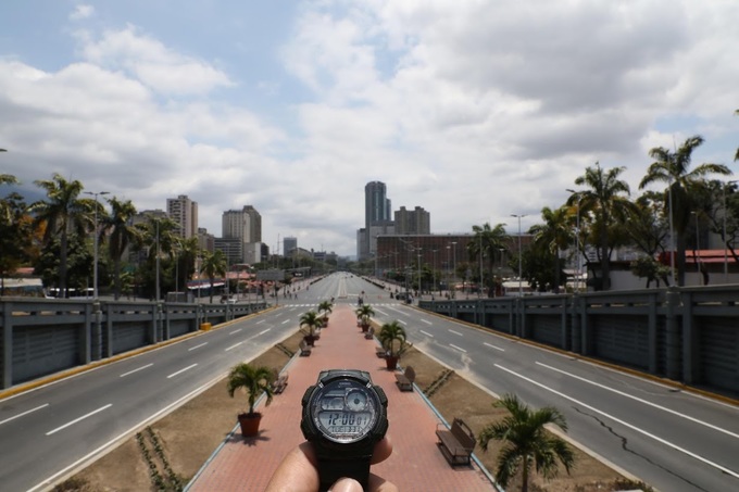 Đại lộ Bolivar Avenue vắng phương tiện giao thông tại thủ đô Caracas, Venezuela. Ảnh: Manaure Quintero/Reuters.