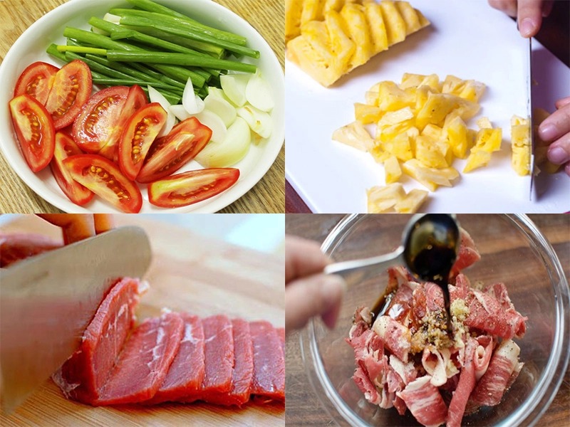 Bước 1: Thịt bò rửa sạch, để ráo nước rồi thái hình con chì hoặc có thể thái miếng mỏng. Tỏi bóc vỏ, băm nhỏ.
