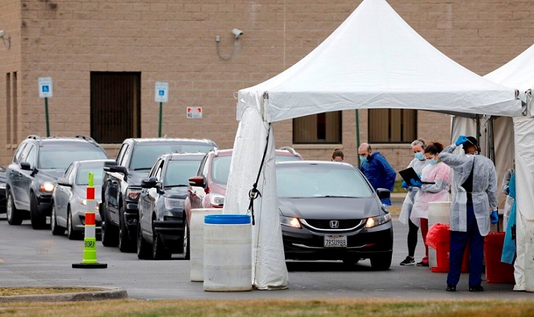 Người dân đến xét nghiệm virus Vũ Hán tại Trung tâm Dịch vụ Xã hội và Kinh tế Cộng đồng Ả Rập (ACCESS) ở thành phố Dearborn, bang Michigan vào ngày 26/3/2020. (Ảnh qua AFP)